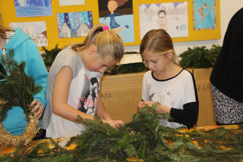 Paní vychovatelky si s dětmi ve školní družině po celý rok připomínají zvyky a tradice předků. Jedno z nejkrásnějších a zároveň z nejbohatších období roku začalo již v listopadu. Advent pro nás ve školní družině začal už na Martina. Nepili jsme sice Svatomartinské víno a husu jsme si vyráběli jen z papíru, ale toužebně jsme očekávali příjezd Martina na bílém koni. Četli jsme si přísloví, pořekadla a pranostiky o svaté Cecilii, o svaté Kateřině i mnoho dalších. A to vše vyvrcholilo samotnou pracovní dílnou Advent. Děti si vyráběly adventní věnce na stůl nebo dveře. Učí se tak pracovat s jinými materiály než ve vyučování, navzájem si pomáhají, zapojí svoje rodiče i prarodiče, starší děti pomáhají mladším. V letošním roce jsme v adventní pracovní dílně vytvořili více než sto třicet věnců, a naše šikovné děti načichlé úžasnou sváteční atmosférou si ještě stihly nazdobit perníček pod odborným dohledem pana učitele Kapla. Pracovní dílna Advent dětem připomíná, že Vánoce jsou opravdu za dveřmi, stačí jen každou neděli zapálit svíčku na adventním věnci. Poděkování patří všem pedagogům a starším spolužákům, kteří přišli pomoci mladším dětem.