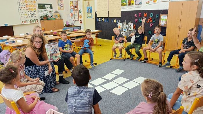 Ve středu 4. 10. 2023 přišli do 1. A a 1. B dvě lektorky z organizace KAPPA – HELP na preventivní besedu Co my na to? Program byl zaměřený na vzájemnou spolupráci žáků mezi sebou a jak se správně chovat v rizikových situacích. Na začátku první vyučovací hodiny byly hry na seznámení. Následovala aktivita Místo si vymění např. Kdo se rád dívá na pohádky? Dále si žáci vytvořili pravidla, která budou dodržovat po celou besedu. Hlavní aktivitou bylo pexeso, kde žáci diskutovali nad obrázky, na kterých byly znázorněny krizové situace. Závěrečnou aktivitou programu v druhé vyučovací hodině byla kresba superhrdiny, kterou všichni představili. V rámci diskuse nad krizovými situacemi žáci dokázali aktivně přemýšlet a odpovídat na otázky, kam se obrátit pro pomoc v konkrétních případech. Všichni poznali špatné a nevhodné chování.