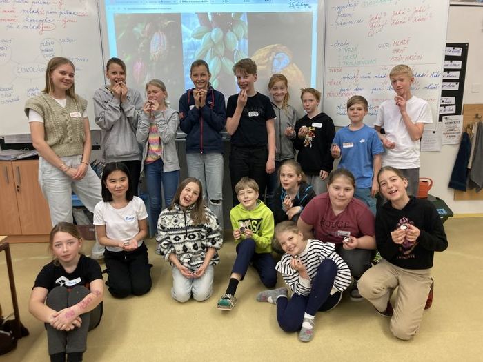 Ke konci dubna proběhl na naší škole projektový den „Den čokolády“. Žáci a žákyně pátých tříd se seznámili s původem kakaa a s procesem výroby čokolády. Každá třída vytvořila „školní čokotým“. Se zástupcem společnosti ARPOK si děti povídaly o tom, kde se kakao pěstuje, jak se čokoláda dostala z kakaových plantáží do Evropy a jak z kakaové hmoty získáme čokoládu. Děti si vaření čokolády spojené s ochutnávkou vyzkoušely ve školní kuchyňce. Dozvěděly se zajímavé informace a rozšířily si tak své obzory.