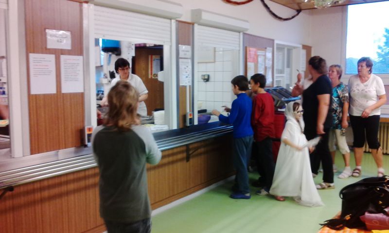 Dne 10. 11. 2015 probíhal na ZŠ Vodní Den otevřených dveří a k této akci jsme se připojili i my, kolektiv školní jídelny. Pro návštěvníky školy byl připraven výběr několika druhů jídel mimo jiné i ta jídla, která měli děti ten den k obědu. Chtěli jsme návštěvníkům, formou degustačních porcí, dát možnost ochutnat pokrmy, která zde vaříme. Krom 4 hlavních chodů jsme nabízeli i 1druh polévky, 2 druhy pomazánek, salát a cizrnový řez. Nezapomněli jsme ani na pitný režim a umožnili jsme také nahlédnout do jídelníčků za tento rok.