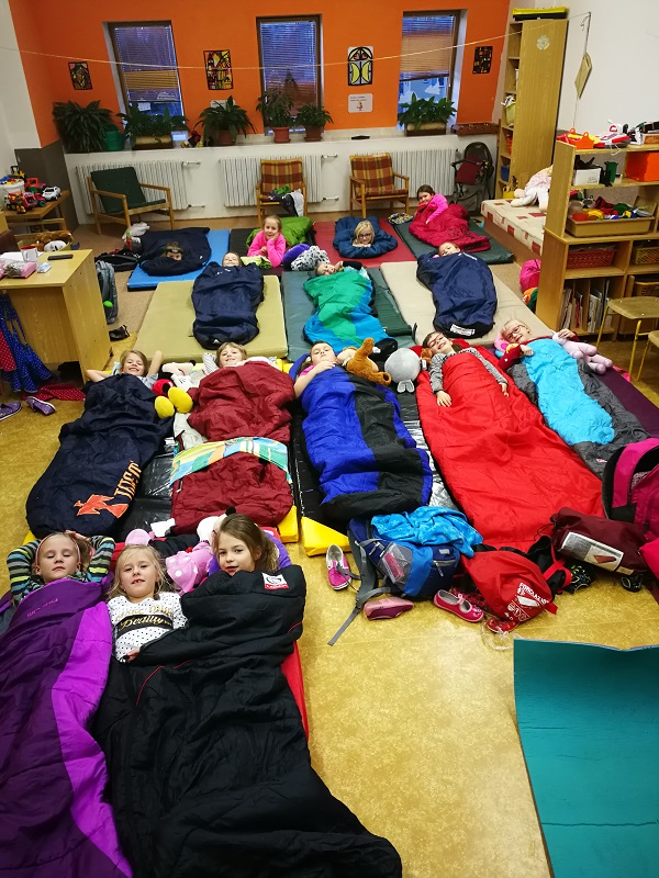 Uplynul rok a nastal opět čas na dobrodružnou noc dramatického kroužku, která proběhla z 18. na 19. ledna 2019. Tradiční akci se nenechalo ujít 31 malých herců a hereček. A protože nás bylo hodně, ke spánku jsme využili tři oddělení školních družin, k občerstvení a stravování nám posloužila školní kuchyňka a ke hrám a zábavě jsme používali obě tělocvičny. Program byl bohatý a velmi nabitý, ale hlavním cílem bylo nacvičení a generální zkouška našeho představení, které nás čeká v úterý 22. 1. 2019. Chtěli bychom pochválit všechny děti za jejich chování, za to, jak si navzájem dokázaly ve všem bez požádání pomáhat, za respektování všech dohodnutých pravidel a za to, že tu s námi byly. Za pomoc děkujeme i paní vychovatelce Dostálové.