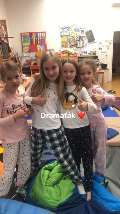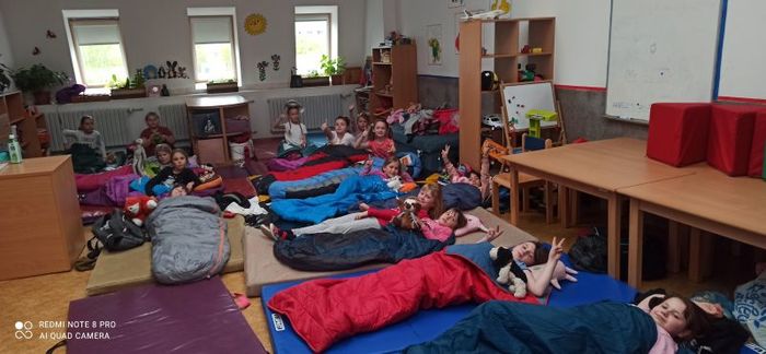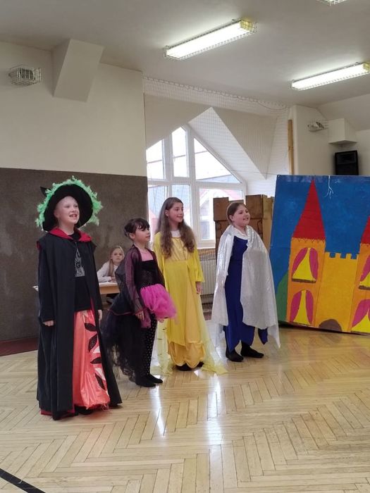 Uplynul zase rok a tak přišel čas na naše každoroční dobrodružství. V pátek 28. dubna zůstali členové dramatického kroužku ve škole a pilně pracovali. Několikrát jsme zkoušeli naši pohádku, hráli jsme hry, večer jsme měli diskotéku ozdobenou svítícími balónky a nakonec nás čekala tentokrát trochu děsivější cesta za skřítkem Potemníčkem. Během zkoušení a her jsme ale museli i pracovat, vařit a uklízet, ale i u toho byla legrace. V pondělí byl svátek, čas oddechu a odpočinku a v úterý nás čekal náročný den. Nejprve dopolední představení pro naše spolužáky a odpoledne vrchol – pohádku jsme zahráli našim nejbližším. Bylo to skvělé. Napětí, stres a nervozitu zvládli naši herci na jedničku, rodiče byli spokojeni. Na závěr je jako tradičně čekalo malé pohoštění, ale až po kontrolním kvízu, kdy jsme si prověřili jejich pozornost. Ráda bych poděkovala všem našim šikovným hercům za snahu a odvahu a jejich rodičům za podporu.