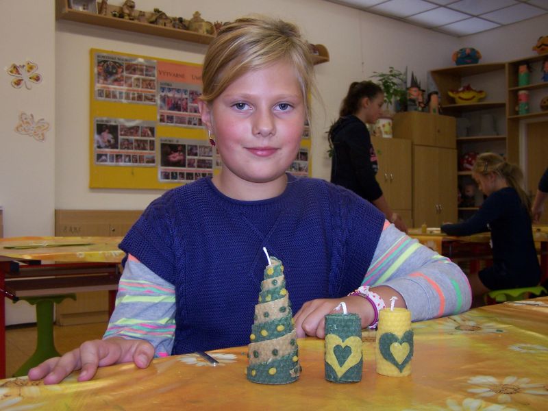 Vůně vosku a medu, světlo svíčky a v teple domova potom příjemně strávené podzimní večery. K tomu nás měly v pondělí 17. října 2016 inspirovat svíčky z vosku, které jsme vyráběli s dětmi ve školní družině. Téměř stovka přihlášených dětí pracovala s mezistěnami z včelího vosku. Děti si svíčky samy stočily, dozdobily si je a odnesly domů. Věřím, že až si je doma s rodiči zapálí, budou z nich mít stejně velkou radost, jaká z nich vyřazovala při práci. Za skvělou pomoc a laskavý a trpělivý přístup děkuji paní učitelce Janě Kolářové, Vilmě Klímové, Ivaně Miketové, Světle Pořízkové a žákům Tomáši Nantlovi, Klárce Weinlichové, Lucce Friedlové, Elišce Rostová, Nikole Škurkové, Elišce Zhánělové, Elišce Zechové a Martině Břundové.