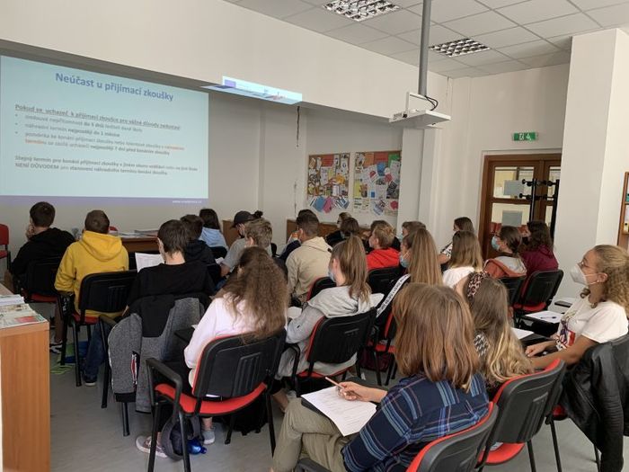 Ve čtvrtek 9. září vyrazila naše třída na exkurzi na pracovní úřad v Šumperku, kde jsme se měli seznámit s možnostmi našich budoucích povolání. Na začátku návštěvy nám pracovnice úřadu popsaly situaci na trhu práce, o jaké povolání je a bude zájem a o které naopak ne. Společně jsme pak vyplnili osobnostní testy, které nám měly pomoci s výběrem profese. Poté jsme dostali čas na prolistováních složek, kde byla vypsaná nejrozšířenější zaměstnání, a na individuální konzultace se zaměstnankyněmi úřadu. Po absolvování exkurze má většina z nás jasno, na jakou střední školu podáme přihlášku.