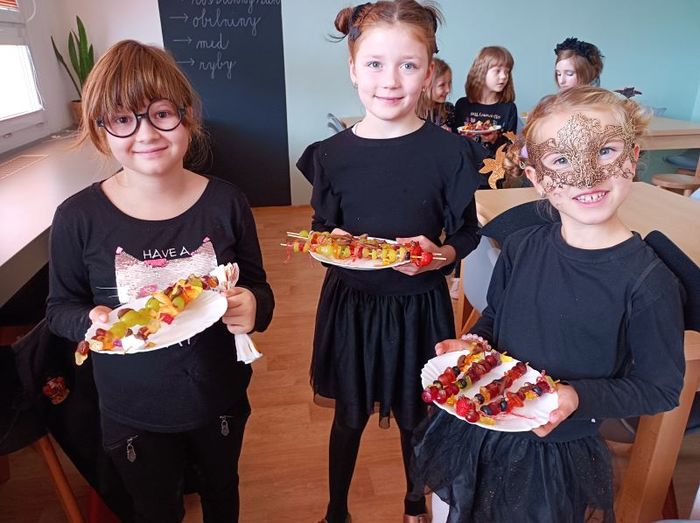 V pondělí 31. 10. jsme se všichni těšili do školy, protože probíhal projektový den Halloween. Ve třídě jsme již byli před sedmou hodinou a krásně jsme ji vyzdobili. Přišli jsme již ve strašidelných maskách kostlivců, upírů, ježibab, …  Učili jsme se v kouzelné škole matematiku, češtinu i čtení, kde jsme si přečetli informace a poučili se o Halloweenu - svátku, který slaví hlavně děti v anglicky mluvících zemích. Ve školní kuchyňce jsme vyrobili ovocné špízy ve tvaru ještěrek a housenek. Nejvíce jsme se těšili na diskotéku. Na konci vyučování nás učil kostlivec zábavnou formou angličtinu. Moc se nám ve škole líbilo a na závěr musíme poděkovat svým rodičům za pomoc při přípravě našich masek a sladkostí.