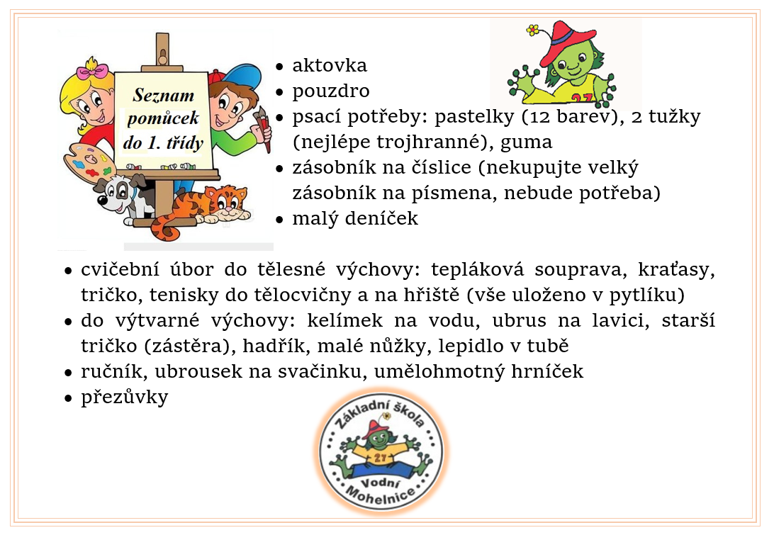 Posíláme Vám seznam potřebných pomůcek do 1. třídy: