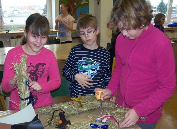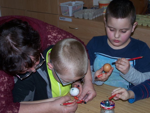Ať už lidé slaví Velikonoce jako svátek křesťanský nebo spíše oslavují příchod jara, líbí se jim velikonoční dekorace vyrobené dětskou rukou a s upřímným úsilím. A tak děti ve školní družině vyráběly velikonoční zajíčky ze sena, s drátenicí Hankou Čunderlovou vytvářely drátovaná vajíčka, a ta pravá slepičí zdobily voskem pod dohledem paní Domesové nebo je okrášlovaly korálky s paní Friedlovou. Pomocnou ruku podali dětem nejen starší spolužáci a spolužačky, ale také paní učitelky Jana Kolářová, Vilma Klímová a Jarka Straková. Za trpělivost, ochotu a čas, který dětem věnovali, jim upřímně děkuji.