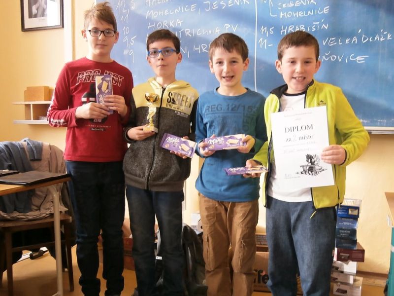 Dne 3. ledna 2019 se konalo krajské kolo ZŠ v šachu v Olomouci. Naši školu reprezentovali Jakub Navrátil, Filip Langr, David Till a Michal Král. Krajský přebor v Olomouci byl historicky nejpočetněji obsazený a našim hráčům se podařil výborný výsledek. Po dramatickém boji naše družstvo obsadilo vynikající 2. místo, což mu umožňuje účast na republikovém přeboru škol, který proběhne v červnu 2019. Tento velký úspěch se podařil po dlouhých osmi letech. Pedagogický doprovod zajišťoval pan Karel Volek, který chlapce vede i v šachovém kroužku a tento výsledek je i jeho zásluhou.
