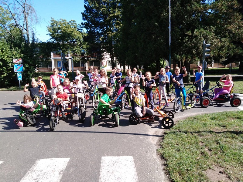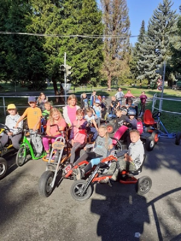 Žáci třetích tříd šli druhý školní den na dopravní hřiště. Po zopakování dopravních značek se hned vydali jezdit na šlapacích autíčkách, koloběžkách nebo kolech. Nakonec dorazili na dětské hřiště v parku, kde se při společných hrách rozloučili s létem a prázdninami.