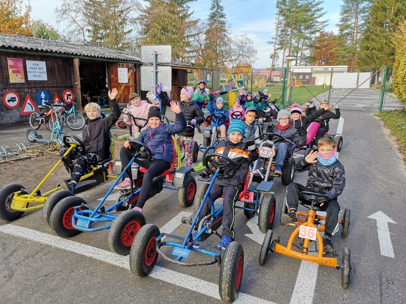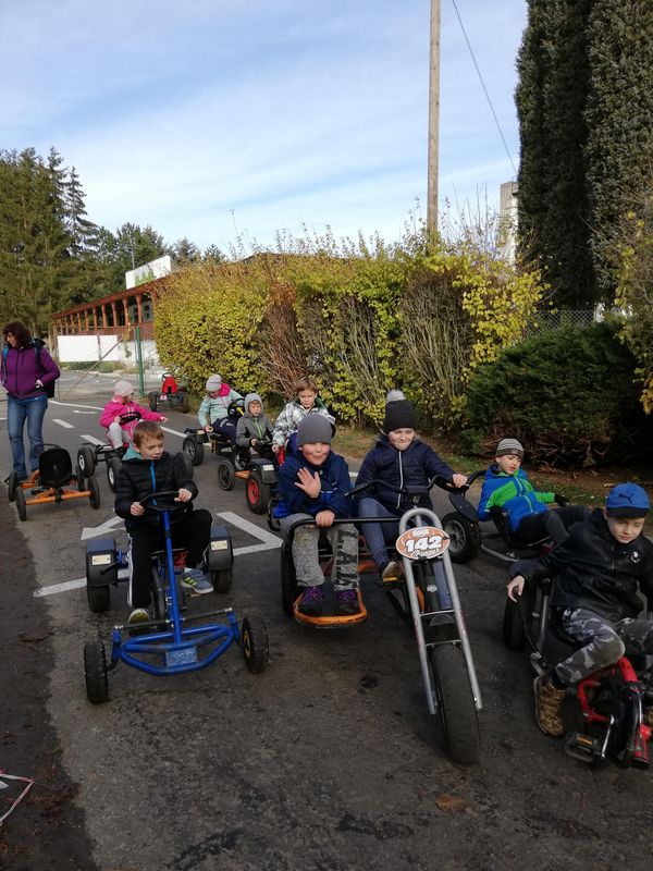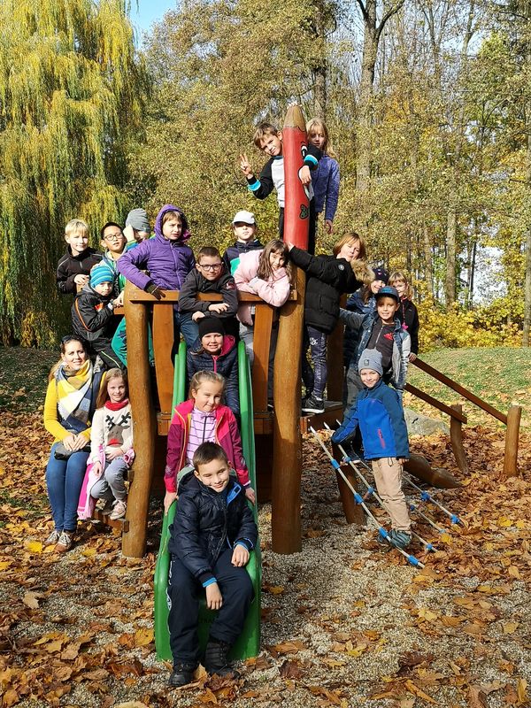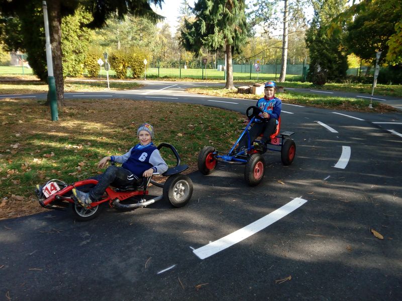 Po podzimních prázdninách se vydaly první, druhé a třetí třídy na vycházku do parku, kde navštívily dopravní hřiště. Zde si žáci vyzkoušeli své vědomosti z dopravní výchovy při praktické jízdě na dopravním hřišti. V parku žáci poznávali stromy jehličnaté i listnaté a zahráli si několik her v přírodě. Sluníčko nám svítilo pěkně na cestu a neradi jsme se vraceli z přírody zpět do školních lavic.