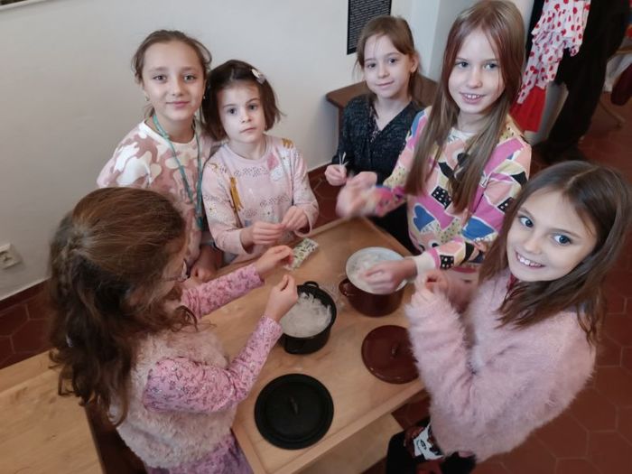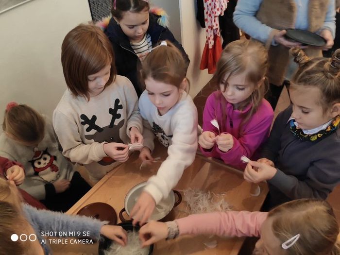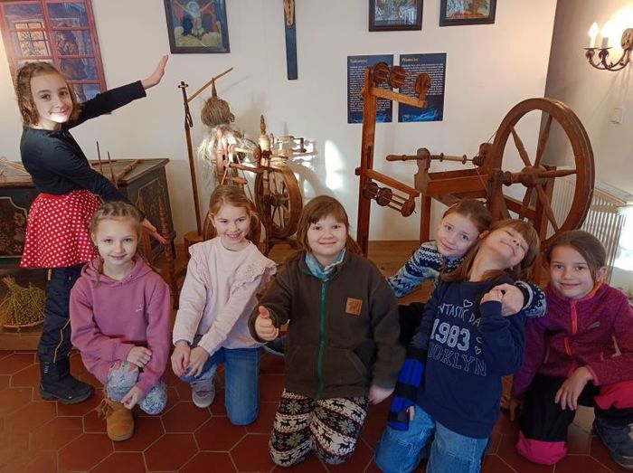 Za dlouhých zimních večerů v chalupách, tak se jmenovala výstava v Mohelnickém muzeu, kterou děti 1. – 3. tříd navštívily. Některé třídy v čase předvánočním a jiné teď na začátku února. Součástí výstavy byla i dílna, kde si mohli žáci vyzkoušet draní peří, jak se vyráběla šindelová taška a tkalcovství.
