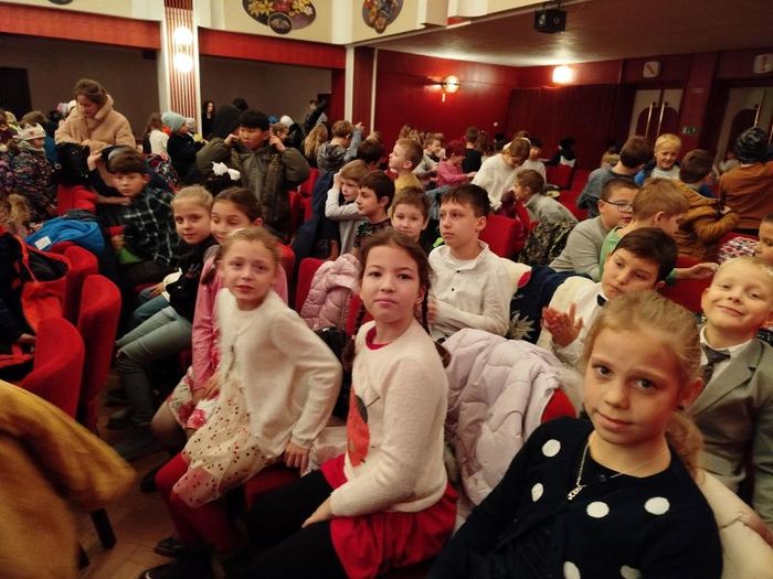 V pondělí 8.12. 2025 navštívili žáci 1. až 3. třídy divadelní představení s názvem Vánoční čas, kdy za dětmi přijeli jejich televizní kamarádi Jú a Hele. Děti si během představení nejen zazpívaly známé vánoční koledy, ale také se aktivně zapojily do různých her a soutěží. Atmosféra byla velmi radostná a všichni žáci si odnesli krásné zážitky, které jim zpříjemní čekání na Vánoce.