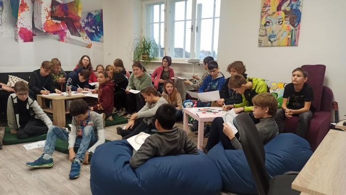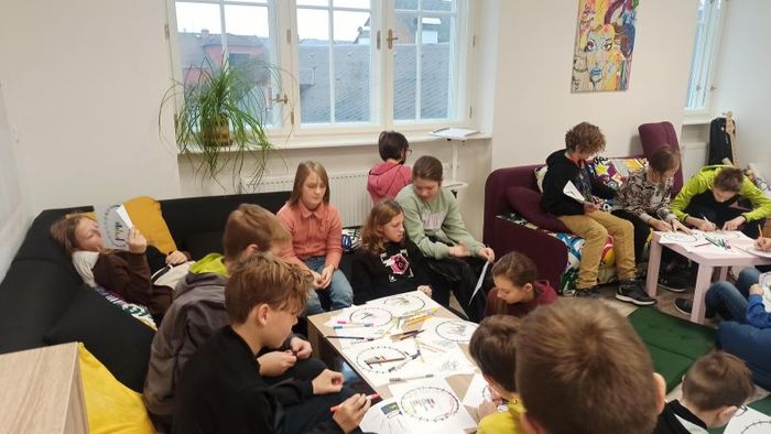Vůbec jsme netušili, že ve městě něco podobného funguje. Povídali jsme si, co rádi děláme, jaké máme koníčky, čím si dobíjíme baterky a zahráli jsme si hru s pocitovými kartičkami. Dozvěděli jsme se, že do Nitky můžeme přijít, když mám nějaký problém, potřebuji pomoc, doučování, svěřit se s něčím. V Nitce se můžu scházet s kamarády. Můžeme si tam i něco uvařit, zahrát si hry anebo jet na výlet.