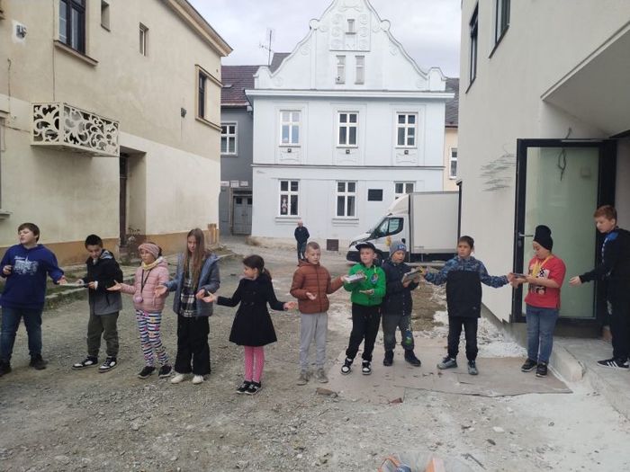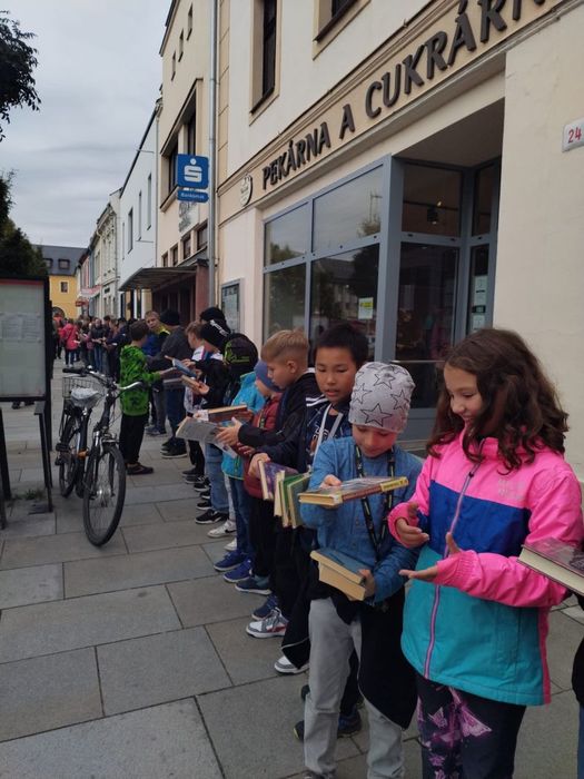 Žáci čtvrtých až šestých tříd se v pátek 18. 10. 2024 společně se sousední Základní školou Mlýnská vydali stěhovat knihy z původní městské knihovny do nově postavené, která sídlí vedle městského úřadu. Všichni zúčastnění vytvořili živý řetěz a vzájemně si knihy mezi sebou podávali. Dětem se nápad velmi líbil a už se těší až novou knihovnu půjdou navštívit.