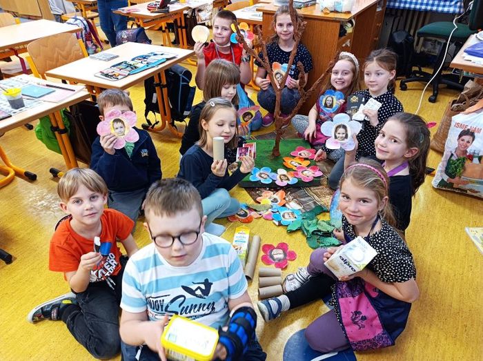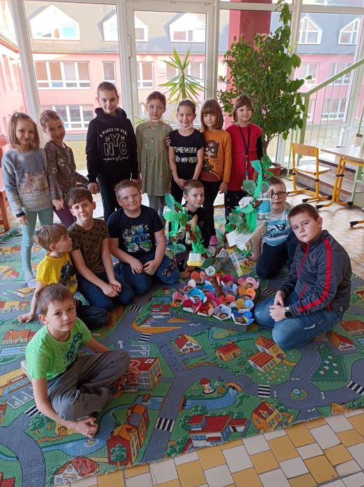 Žáci II. A se svojí paní učitelkou se rozhodli zapojit do soutěže DDM v Mohelnici. Pracovníci zde vyhlásili soutěž ve výrobě listnatého stromu z recyklovaného materiálu do konce února. Kostrou stromu se stala větev, kterou jsme obalili novinami namočenými v tapetovém lepidle. Po týdnu jsme temperovými barvami strom natřeli. Paní asistentka nás vyfotila a fotky jsme nalepili na vymalované květy, které jsme připevnili pod strom. Nakonec každý donesl odpadový materiál, který jsme pověsili. Dolepili listy a výrobek byl hotový. Tvořivá kreativní práce se nám moc líbila, a ještě jsme měli dobrý pocit, že jsme pomáhali naší přírodě od odpadového materiálu.