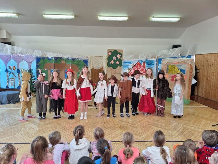 Nejprve jsme pohádky hráli pro naše spolužáky, poté pro děti z MŠ Hálkova a MŠ Na Zámečku a na závěr pro naše nejmilejší - rodiče. Naši malí herci se od rána zlepšovali a své výkony pilovali. Děkujeme, děti.