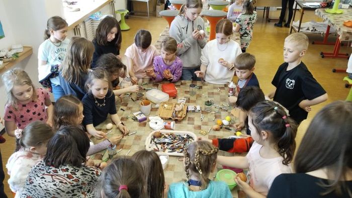 Děti ve školní družině se v úterý sešly v učebně výtvarné výchovy, aby z kousků látek, větviček a drobných ozdob vytvořily jarní dekorace. Pod jejich rukama vznikaly jemné věnce plné barevných motýlů – a právě ty se pak rozletěly do svých domovů. Stovky motýlů v ten den symbolicky odletěly do rodin, aby přivítaly jaro a připomněly blížící se Velikonoce. V naší školní družině ale k tomuto období patří i pravidelná návštěva. Paní Domesová trpělivě zdobí vajíčka a my se od ní učíme, jak na to. Děti ji s nadšením napodobují a každé vajíčko je malým důkazem jejich snahy a radosti z tvoření. Náročnou práci ušít motýla za nás vyřešila paní Seidlová. Nejmladším dětem prvního stupně pomáhali všichni. Pedagogové vedli jejich jistou rukou, starší spolužáci ochotně radili a podporovali. Bylo vidět, že když se spojí zkušenost s ochotou pomoci, vzniká nejen krásná práce, ale i příjemná atmosféra: super parta, kde nic není problém, všude září úsměvy, šíří se jen dobrá nálada a radost.