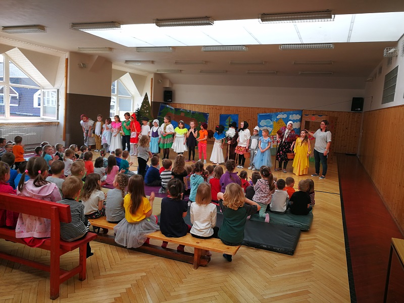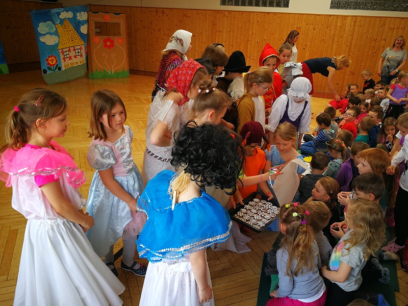 Dne 17. 4. 2018 jsme hráli znovu naši pohádku. Naše pozvání tentokrát přijala MŠ Hálkova a moc nás potěšilo, že přišly všechny oddělení této školky – to znamená přes 80 dětí. Dětem jsme hráli naši oblíbenou Tak trochu domotanou perníkovou chaloupku. Děti nás odměnily dlouhým potleskem a výkony našich malých herců a naši společnou práci pochválily i paní učitelky, z čehož máme obrovskou radost. Po představení jsme si s dětmi zahráli krátký pohádkový kvíz týkající se naší pohádky a je nutné dodat, že děti byly bystré a dokázaly na všechny otázky správně odpovědět. Na závěr jsme pro děti měli připravenou drobnou pozornost v podobě malého domácího perníčku z „naší perníkové chaloupky“.