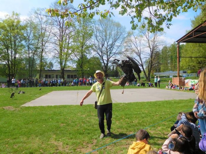 5. května 2022 zažili naši žáci krásné dopoledne v mohelnickém lesoparku. Přijeli k nám totiž sokolníci z jižní Moravy s výukovým programem Zayferus. Program byl velmi pěkně zorganizovaný a všichni žáci mohli vidět dravce velmi z blízka a také se o nich dozvědět zajímavé informace. Kdo dával pozor, mohl také vyhrát hodnotné ceny. Mezi hlavní výhru patřil nástěnný kalendář, plný nádherných fotografií přímo od sokolníků. Další výhrou byly dva neopakovatelné zážitky. Dva žáci, kteří jako první správně odpověděli na otázku, si mohli vypustit a přivolat krásného dravce. Některé děti si odnesli kromě úžasného zážitku také peříčka, která našli na zemi v okolí dravců. Krásné slunečné počasí bylo už jen třešničkou na závěr. Děti byly nadšené, těšíme se na příště.