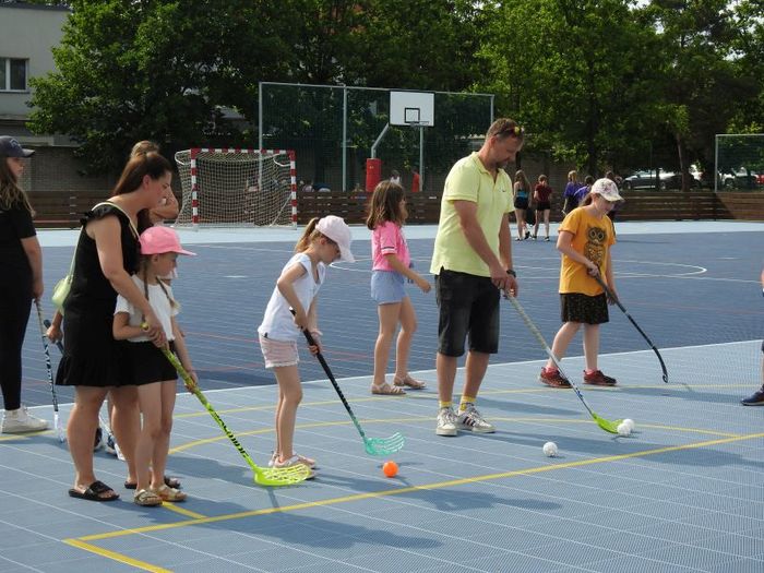 Pro tento účel jsme využili prostory našeho nového víceúčelového hřiště, venkovní učebnu, dětské hřiště a exteriéry školy. Děti společně se svými rodiči, prarodiči a dalšími rodinnými příslušníky soutěžily v rozmanitých disciplínách – stezka zručnosti, střelba ze vzduchovky, kuličkiáda, skákání v pytli, chůze po prknech, Kimova hra a další. Nechyběla ani pracovní dílna drátování, malování na obličej nebo prodej originálních výrobků dětí keramického kroužku. V průběhu zábavného odpoledne vystoupila taneční skupina X-treme pod vedením paní Malinkové, o hudební doprovod se postarala školní kapela a taneční vystoupení si připravily děti ze 3. A.  Pro povzbuzení a na posilněnou jsme pro naše hosty připravili občerstvení a posezení za doprovodu reprodukované hudby. Rodinné týmy byly za své sportovní výkony odměněny dárkovými poukazy a drobnými dárky.